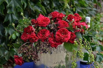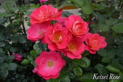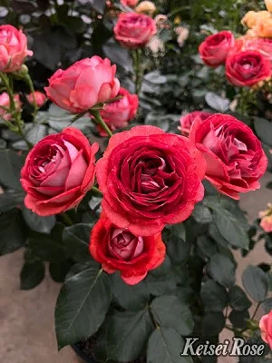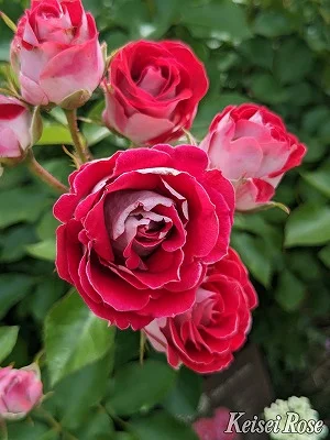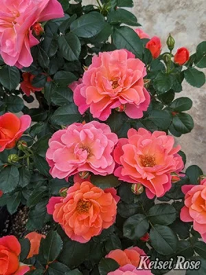 一押しポイント5~8輪程度の房咲で、中型のシュラブ