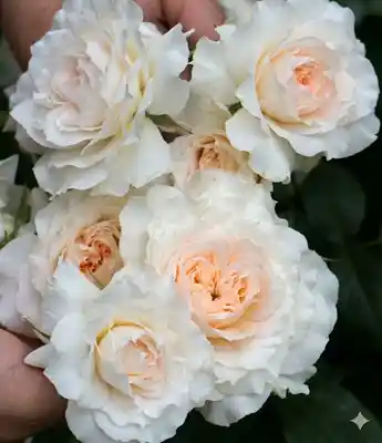 "季節によって花色が変化する。ホワイトベースで夏は白く中央がアプリコット秋は中央が薄いブルーを帯びる"
